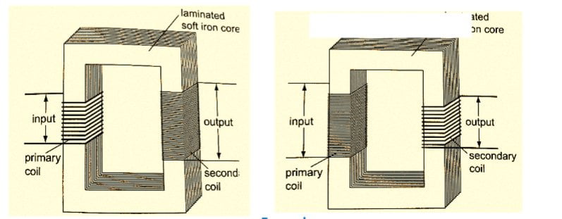 - iv) Eddy currents– reduced by using a core made of thin, well insulated and laminated sections.